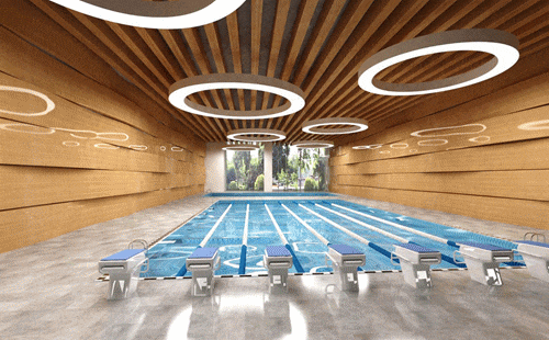具有实冰溜冰场、泅水馆等数十大专业体育场地,
